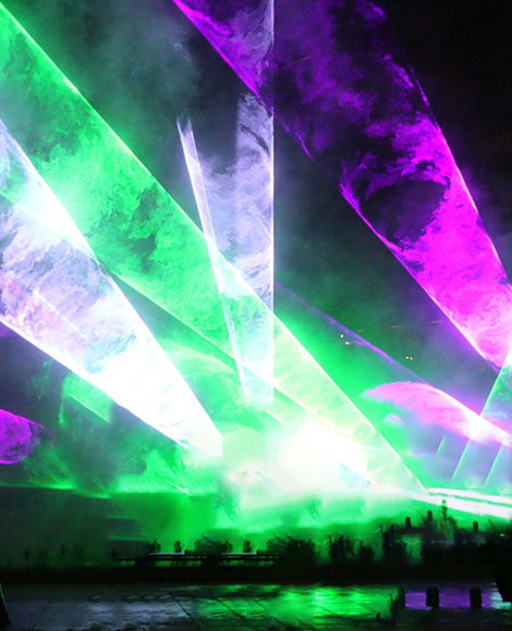 激光表演,就是用激光產(chǎn)生一些視覺(jué)效果,用來(lái)迷惑觀(guān)眾。常見(jiàn)的是把各種色彩的激光槍投射至空中,伴隨炸彈,用振動(dòng)的炮口讓光束在空中轟炸。